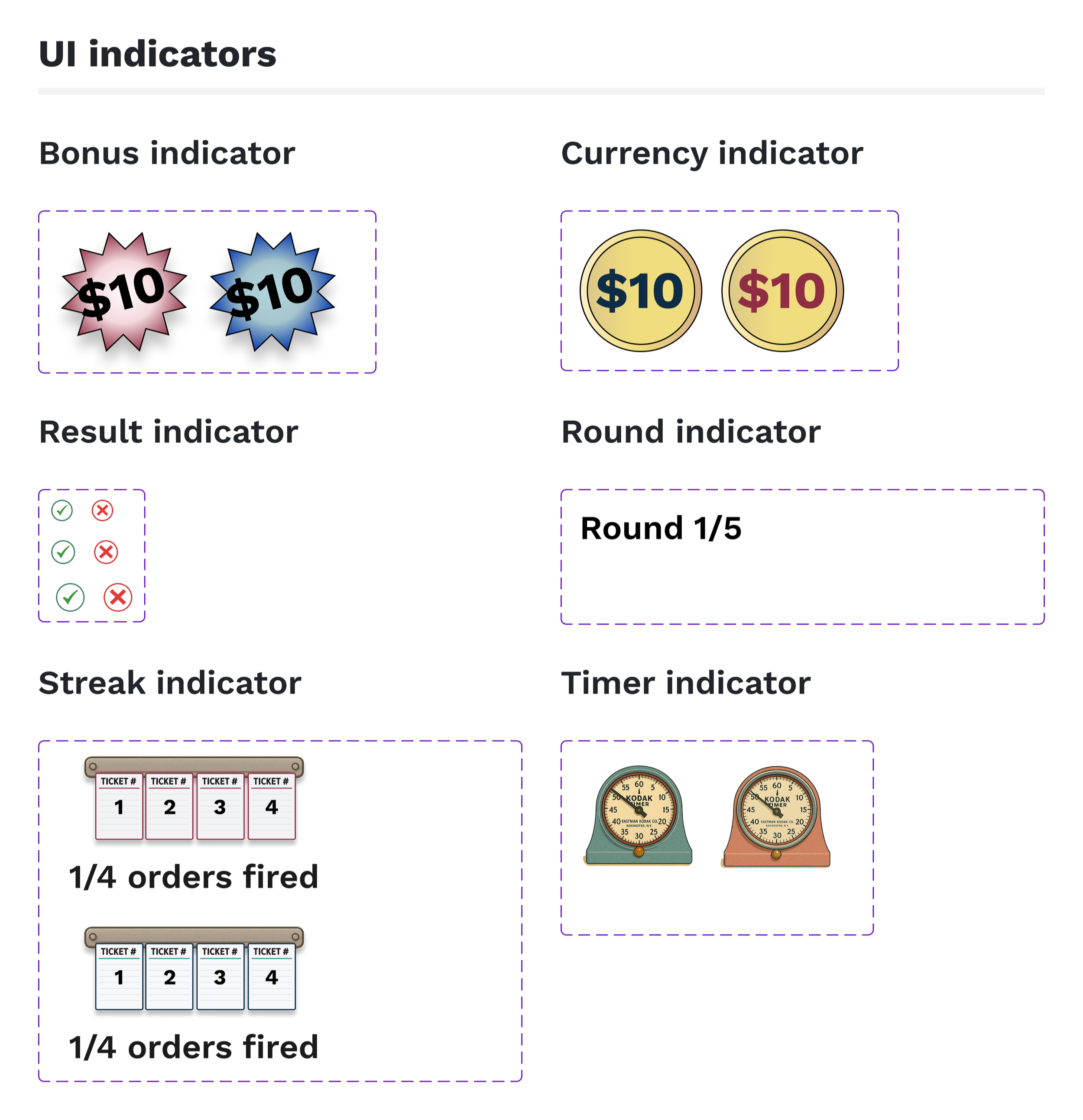 A mobile game where players complete recipes for points, with bonus scoring for high-priority orders. Informed how to visually signal ingredient requirements, progress indicators, and point incentives to players at a glance.