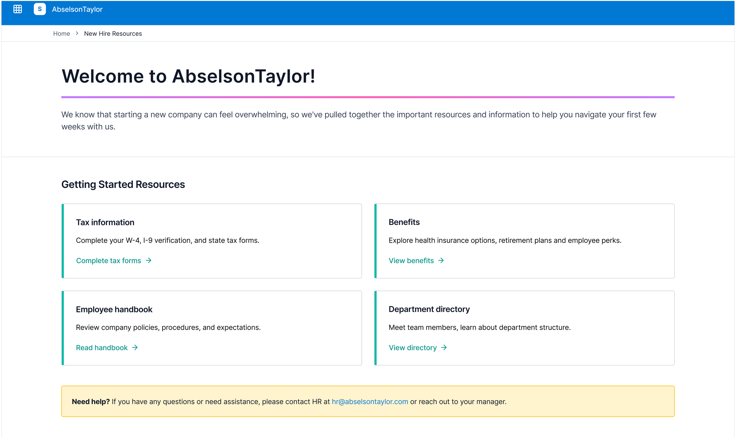 A pre-boarding link and a resource site that gave new hires a head start