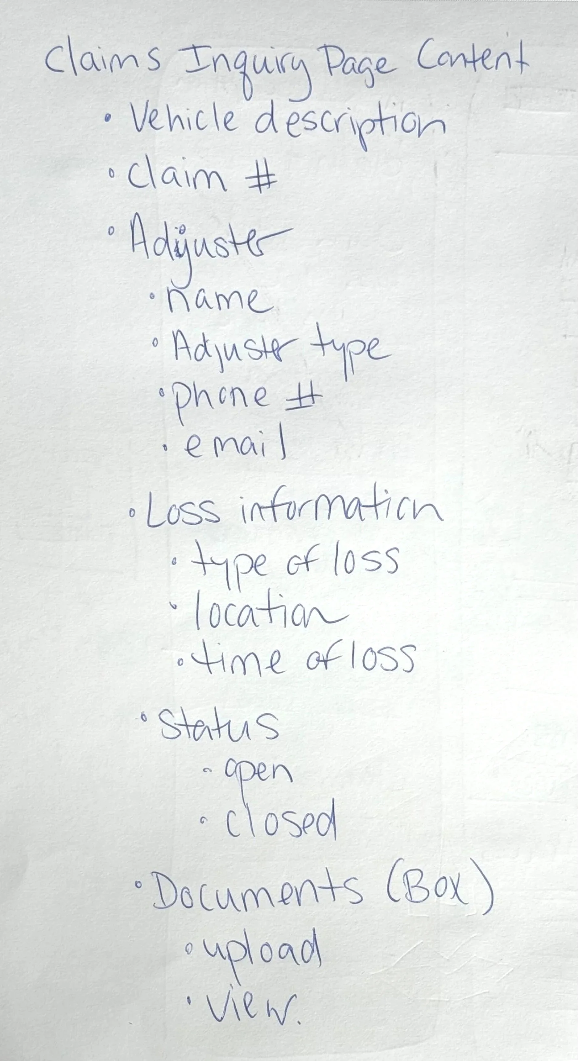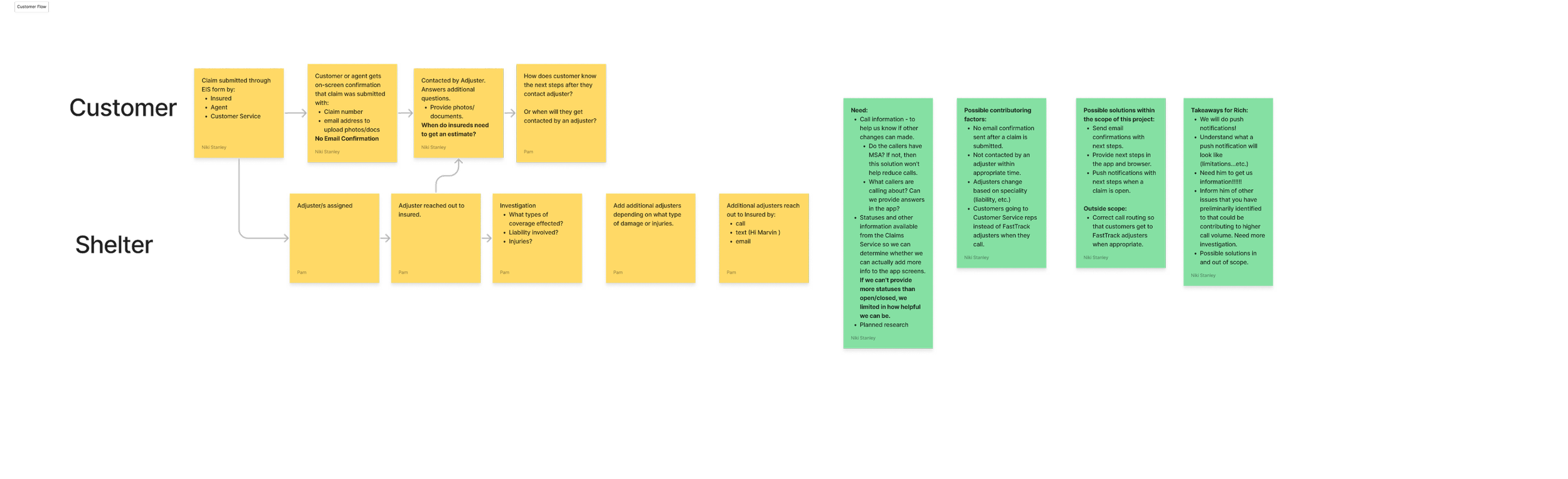 Stakeholder interviews across claims adjusters, claims management, and customer service revealed the following themes: