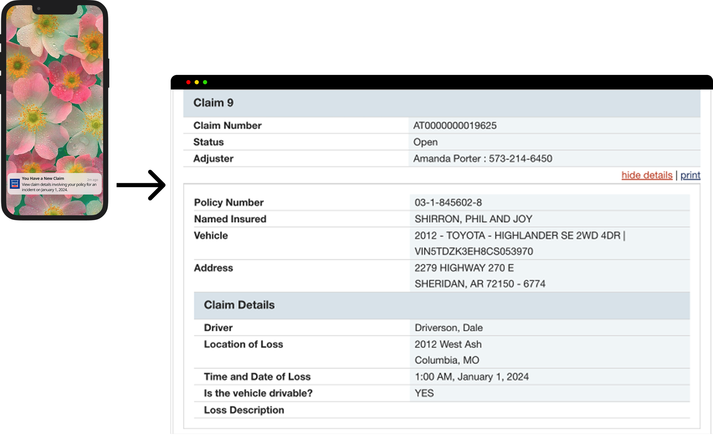 Customers lacked access to real-time updates about claim status and adjuster changes