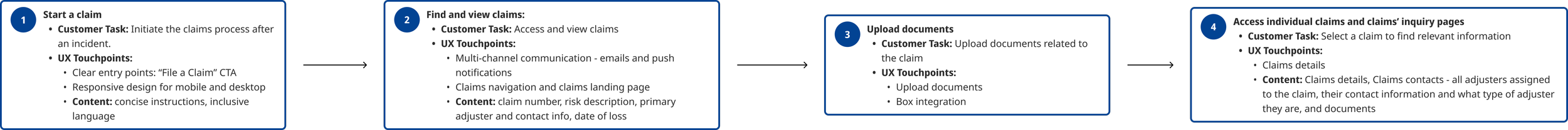 I began by identifying key customer tasks—like filing a claim or uploading documents—and mapping out the journey to ensure each step is intuitive and accessible.